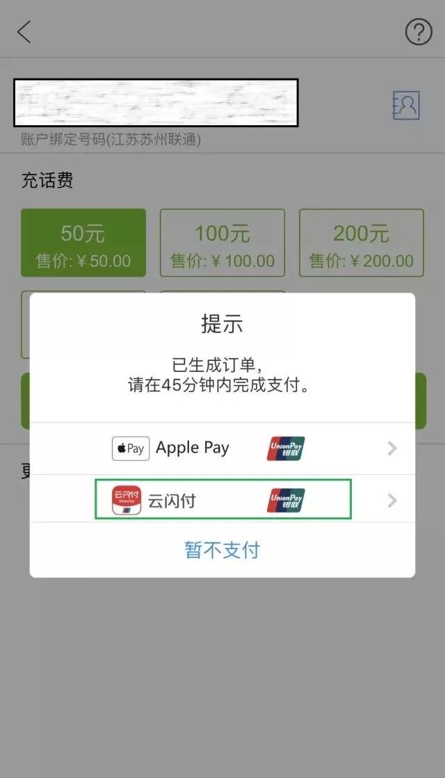 在云闪付APP内进行手机充值时选择【云闪付】付款 ,充值金额(非实付金额)满50元 ,即可享受随机立减1-10元优惠 。活动期间每日限量5万笔 ,单用户每自然月限享受1笔优惠 ,数量有限 ,先到先得 。